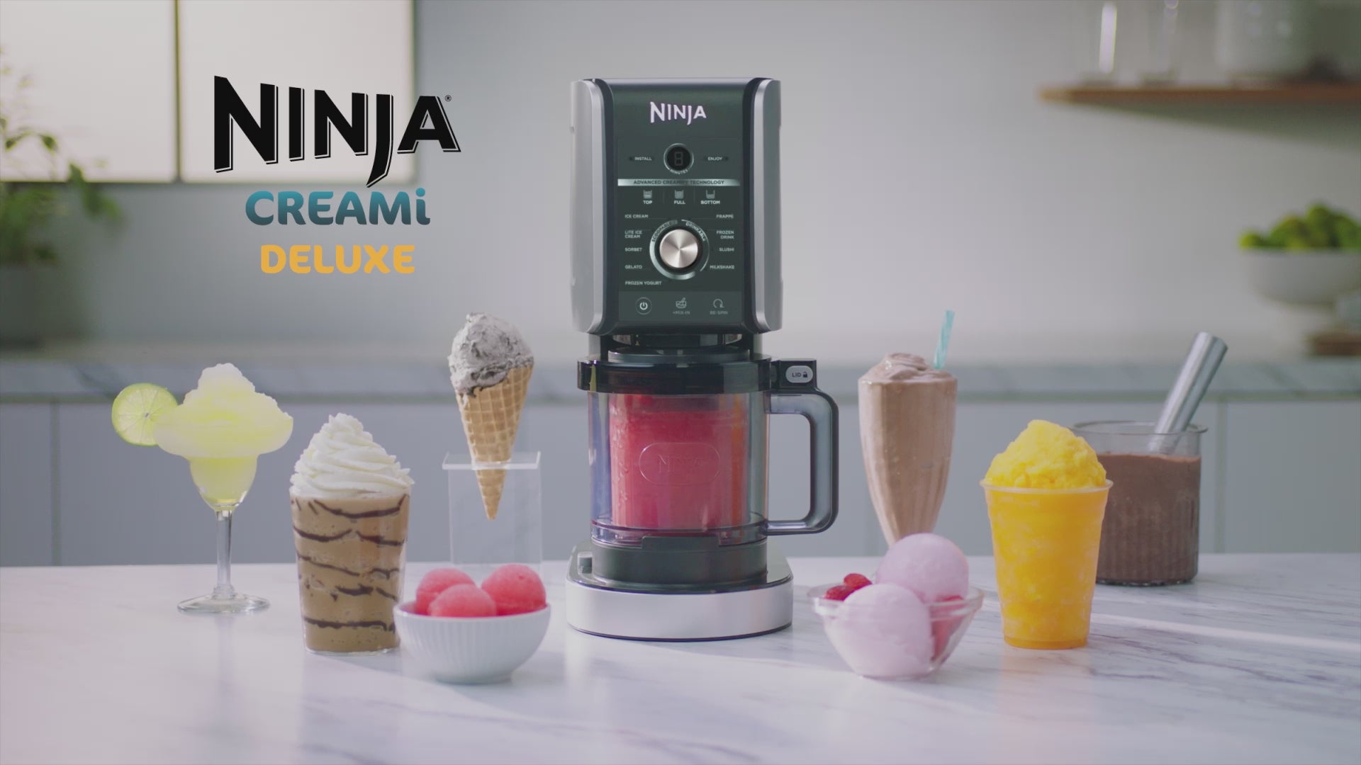 Mit dem Ninja CREAMi Deluxe verwandeln Sie alles in Eis und noch viel mehr. Machen Sie CREAMi-Klassiker wie Eis, Sorbet, Gelato und Mix-in-Meisterwerke und bereiten Sie jetzt auch Slushies, Frappés, Frozen Yoghurt und Frozen Drinks direkt zu Hause zu.