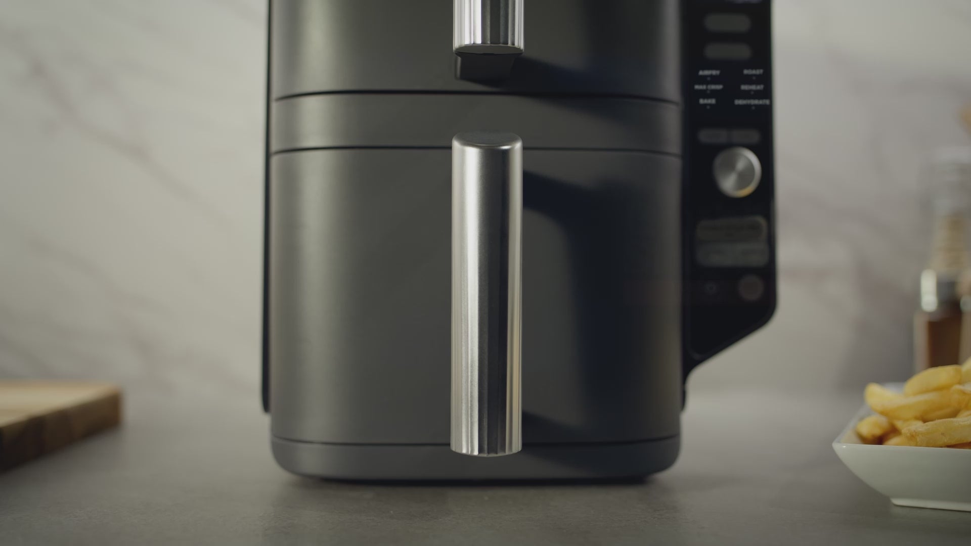 - 30 % kleiner als andere Doppel-Luftfritteusen. Mit zwei 4,75-Liter-Schubladen, ideal für große Familien. Bietet ausreichend Kapazität.